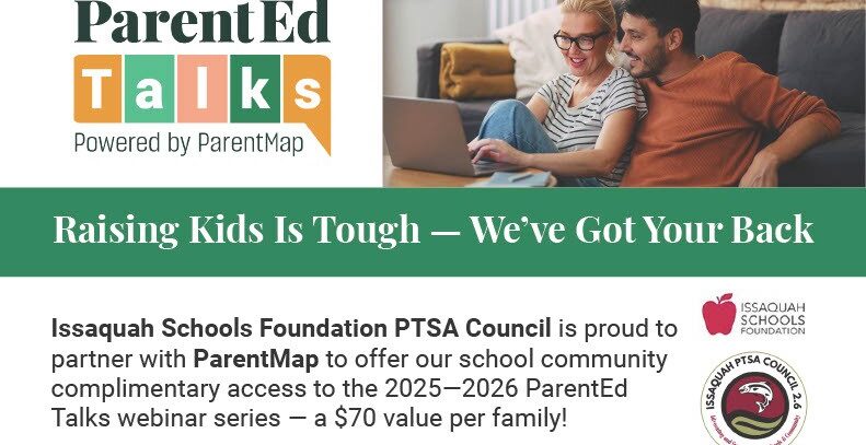 We’re proud to offer our ISD families free access to the full series of ParentEd speakers, over a $70 value! Attend webinar sessions live or watch recordings on your own time. See the full speaker line-up and register today using discount code ISSQUAHSCHS.
